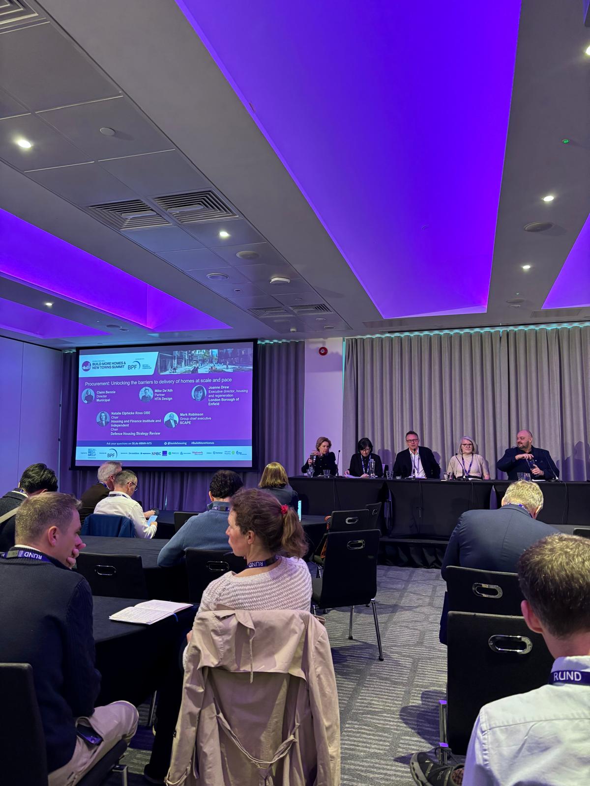 With 83% of the sector identifying procurement as a barrier, discussion focused on how the 2023 Procurement Act has introduced additional complexity and transparency requirements that risk putting strong developers off public sector work. But the case was also made for procurement as an enabler. Mark Robinson (Scape) argued it can be a silver bullet when used to foster collaboration, while Joanne Drew (Enfield) showed what that looks like in practice through a mission-based, data-driven approach delivered end-to-end in four to five months. Claire Bennie and Natalie Elphicke Ross identified the deeper challenge as a lack of trust and fear of challenge - and the solution: embedding design quality and true collaboration into the brief from day one.